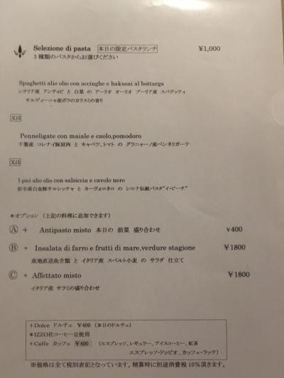 お願いしたのは、パスタランチ(税別@1,000-)のアンチョビと白菜のアーリオオーリオ。