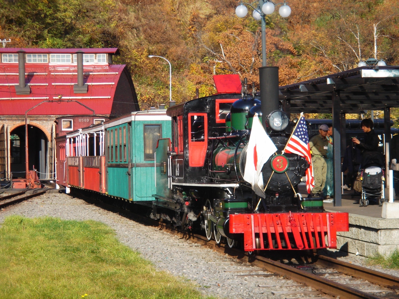動態保存されているアメリカ製の蒸気機関車にも乗れて、鉄道好きには大満足スポットです。