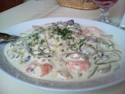 ここのオススメは海の幸ときのこのクリームソースパスタ。