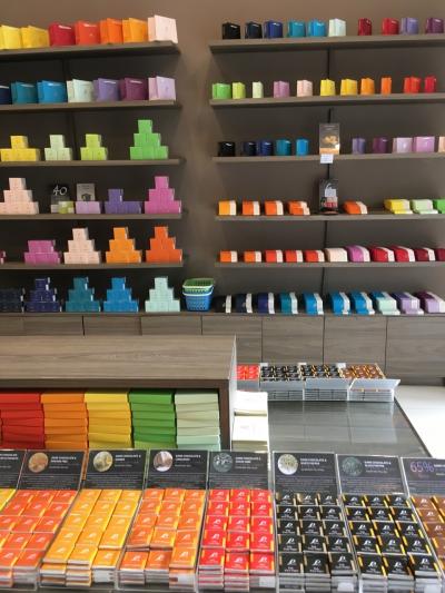 売られているのは、カードタイプチョコレートで、カカオ65%のDark Chocolateやそれにシナモンを加えたもの、36%のMilk Chocolate、White Chocolate など18種類。