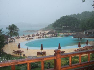 プールサイドでランチカンダブリのビーチレストランは半分工事中で、雨...