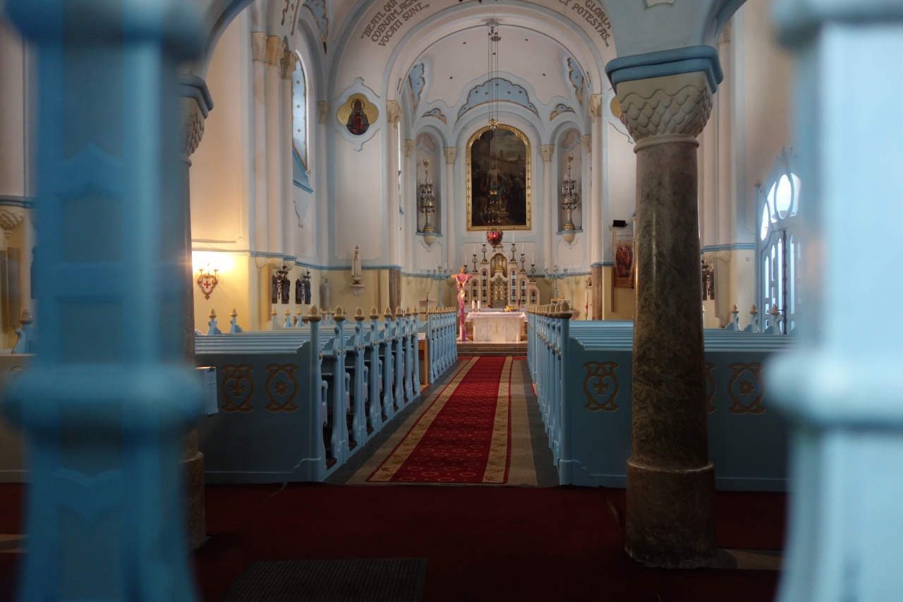 教会の内部も水色。
