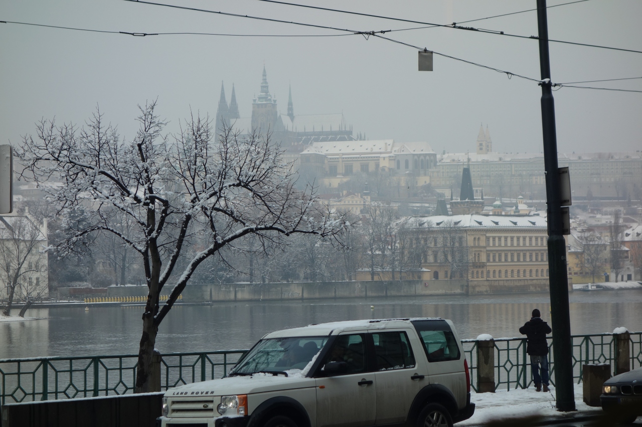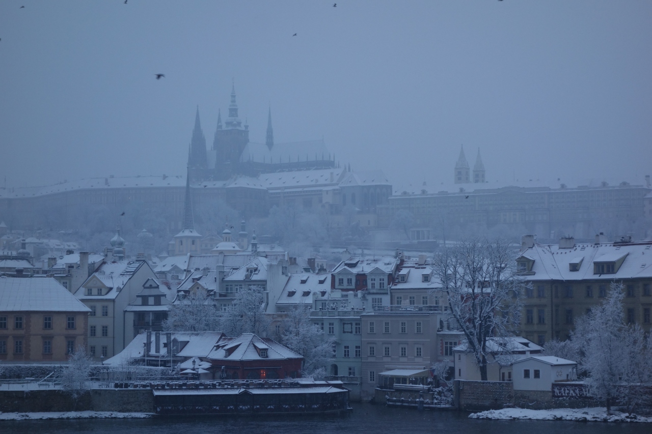雪のプラハ・カレル橋のモノトーンの色彩も美しいです。