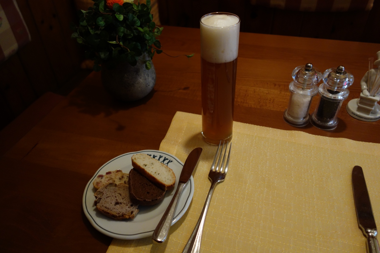 プラハのピルスナーとは違うオーストリアならではの白ビールとともにいただきました。