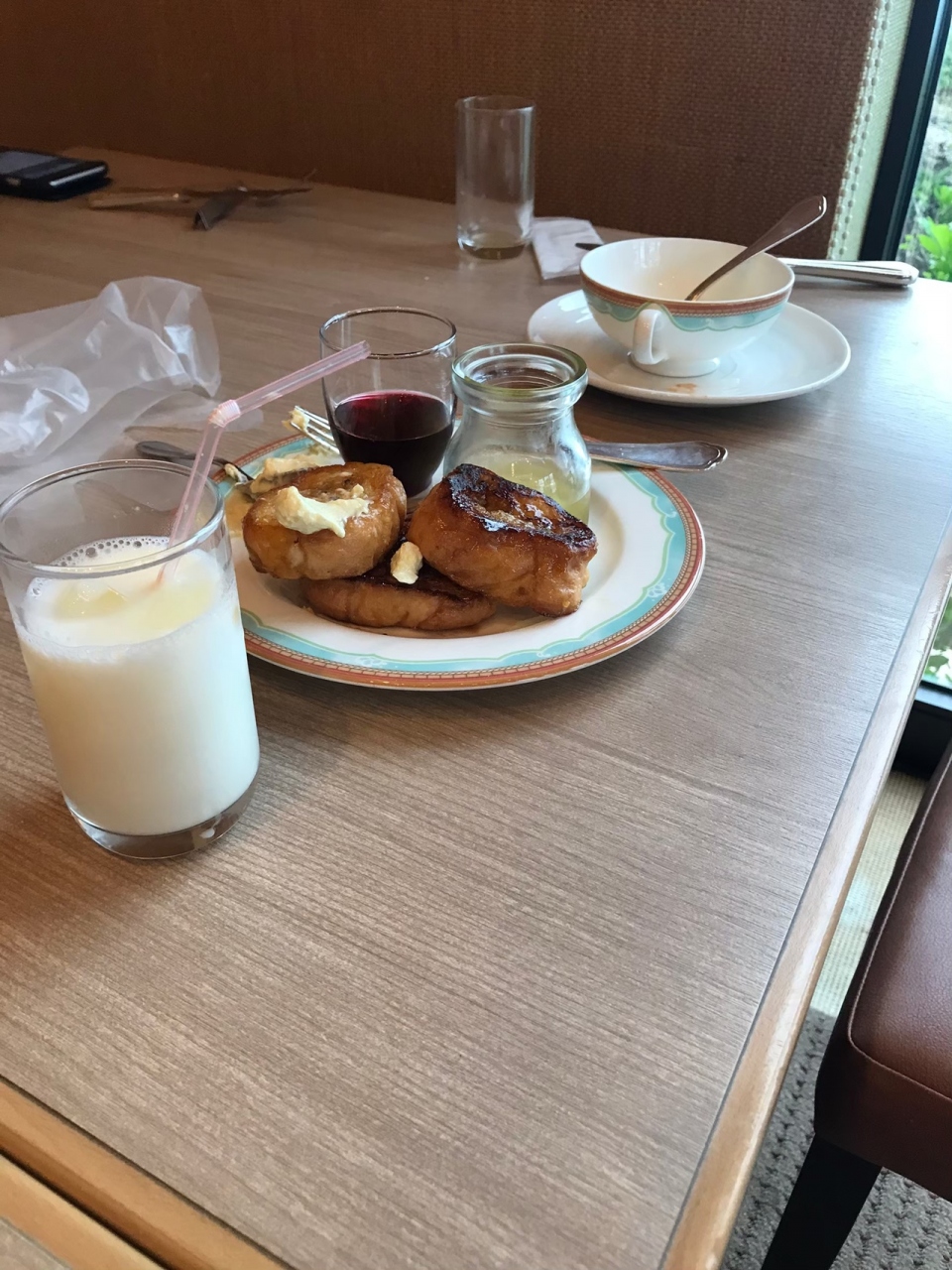 朝食ビュッフェは、黒糖のフレンチトーストやパイナップルバターがとても美味しく、パイナップルバターはお土産に購入してしまいました。スープが濃厚でとても美味しかったです。店内からは海が見え、インテリアも素敵でした。- 旅行時期