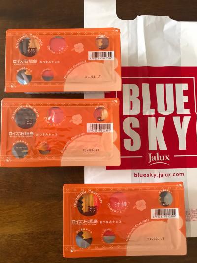 那覇空港の制限エリア内にあるJAL系列のお店で、JALカードで支払いすると割引がありお得です。ブルーシールのアイスが買えるカウンターがあるので、いつも飛行機に乗る前に食べます。最後にお土産を買い足すにも便利です。機内でのおやつ用にロイズ石垣島のお菓子詰め合わせを購入しました。