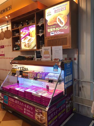 那覇空港の出発ロビー階にあるベーカリーです。焼きたてのパンが色々並んでおり、機内用のおやつにちょうど良いです。佐賀牛のカレーパンが有名なようです。けっこうボリュームがあり、美味しいので人気のようです。紫芋のタルトは沖縄土産にも良さそうでした。