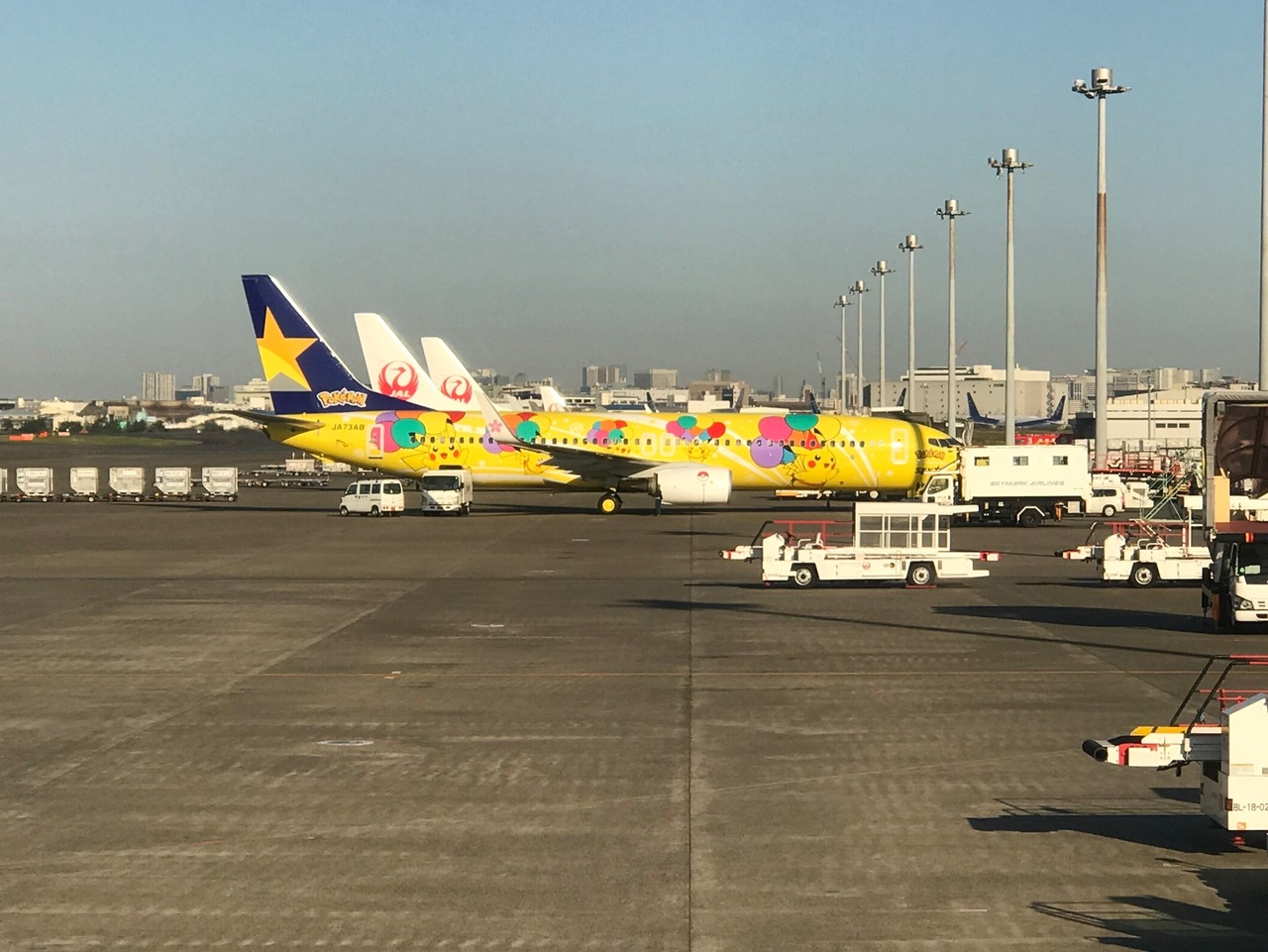 JALどこかにマイルで釧路往復便が当選し、搭乗のため利用しました。コロナ感染者が劇的に落ち着いていた時期のためか、ロビー内はそこそこ混雑していました。出発ロビーからはJALの飛行機とスカイマークの飛行機が並んでいるのが良く見え、ピカチュウの飛行機が見られて子どもは大喜びでした。
