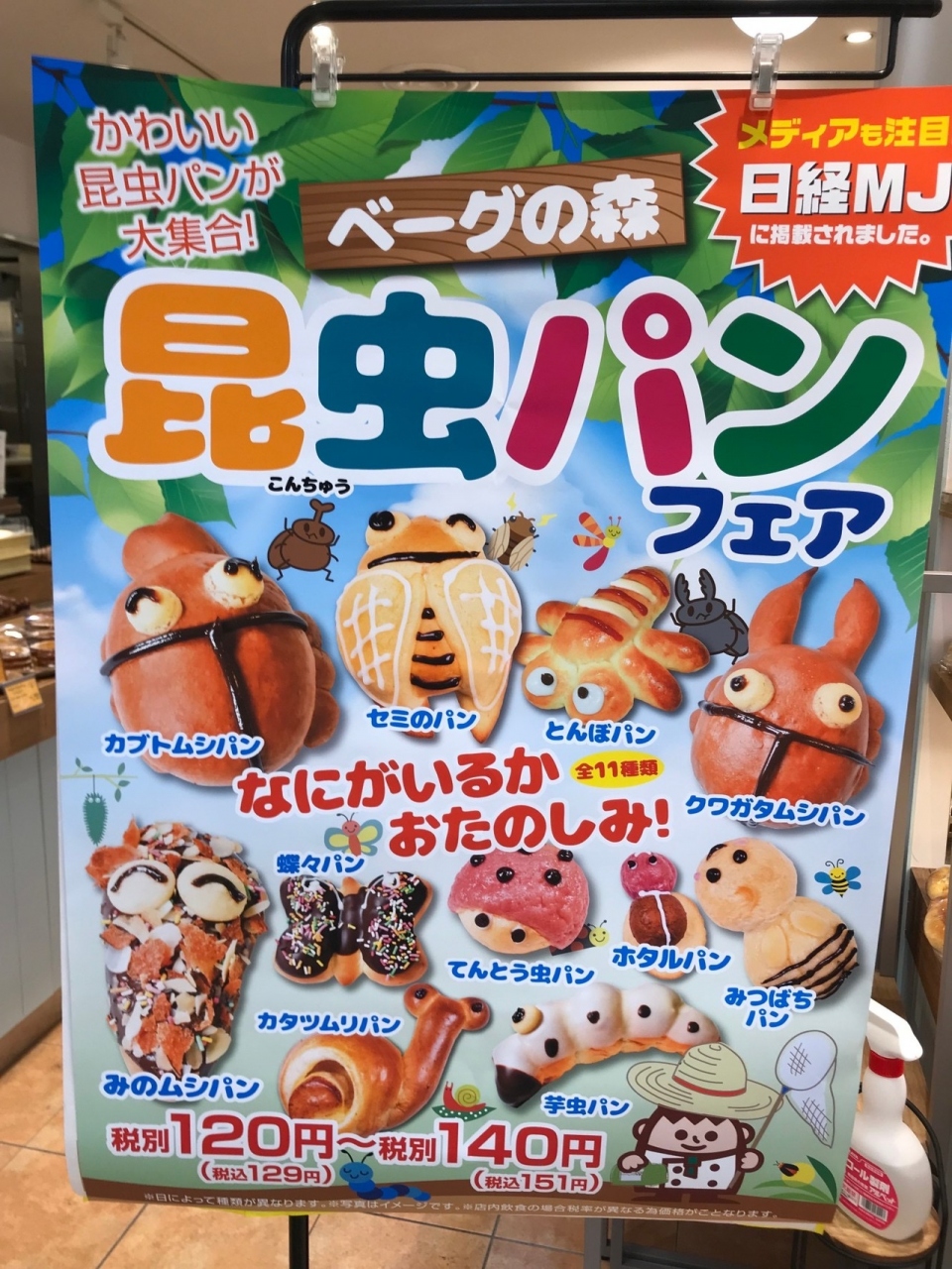 川越駅直結の駅ビル、アトレ川越の地下一階の食品街にあるパン屋さんです。小さな店舗ですが、イートインもあり、コーヒーがアイスもホットも100円でいただけるのがリーズナブルで嬉しいです。子どもが喜ぶ昆虫の可愛いパンのフェアをやっていました。