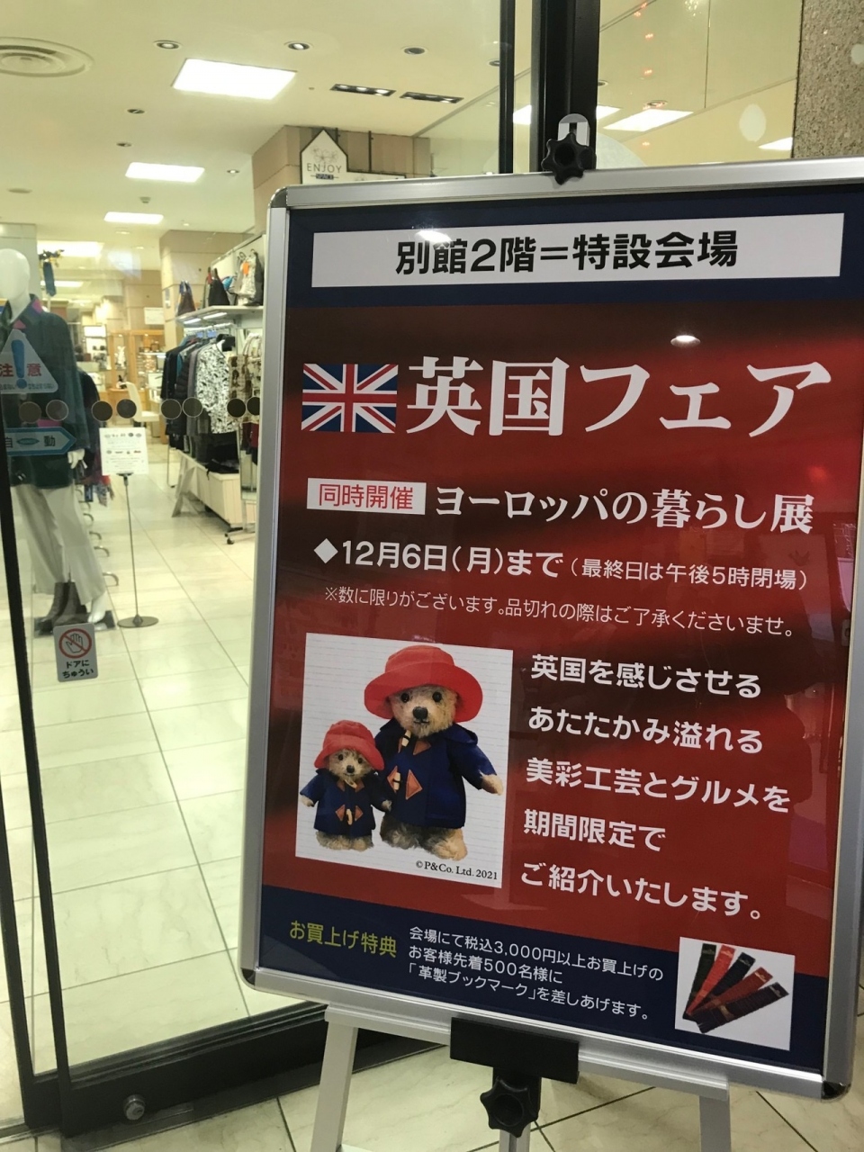 川越駅から本川越駅を結ぶクレアモール沿いにある百貨店です。百貨店としてはこじんまりとしていますが、地域ではきちんとしたものを買う時はやはりここ、と信頼されているお店です。クリスマス用品を買いに行きました。店内は装飾も華やかで、英国フェアが賑わっていました。