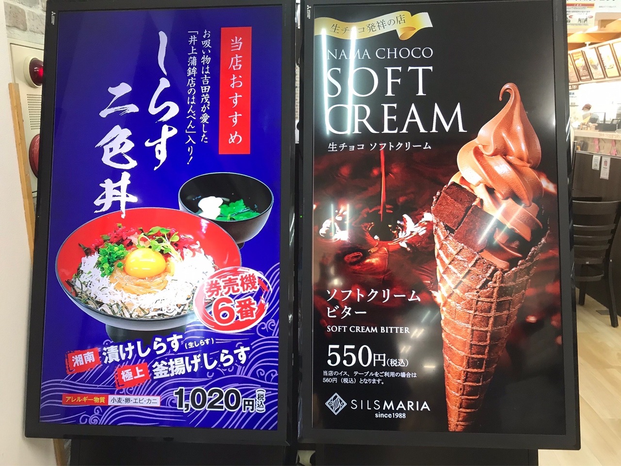 大磯パーキングエリアの上り車線にあるフードコートです。お土産屋さんと併設されており、小田原かまぼこなどの地域のお土産も購入出来ます。湘南のしらす丼が名物のようでした。小さな規模のフードコートですが、アクリル板など感染対策もしっかりされていました。