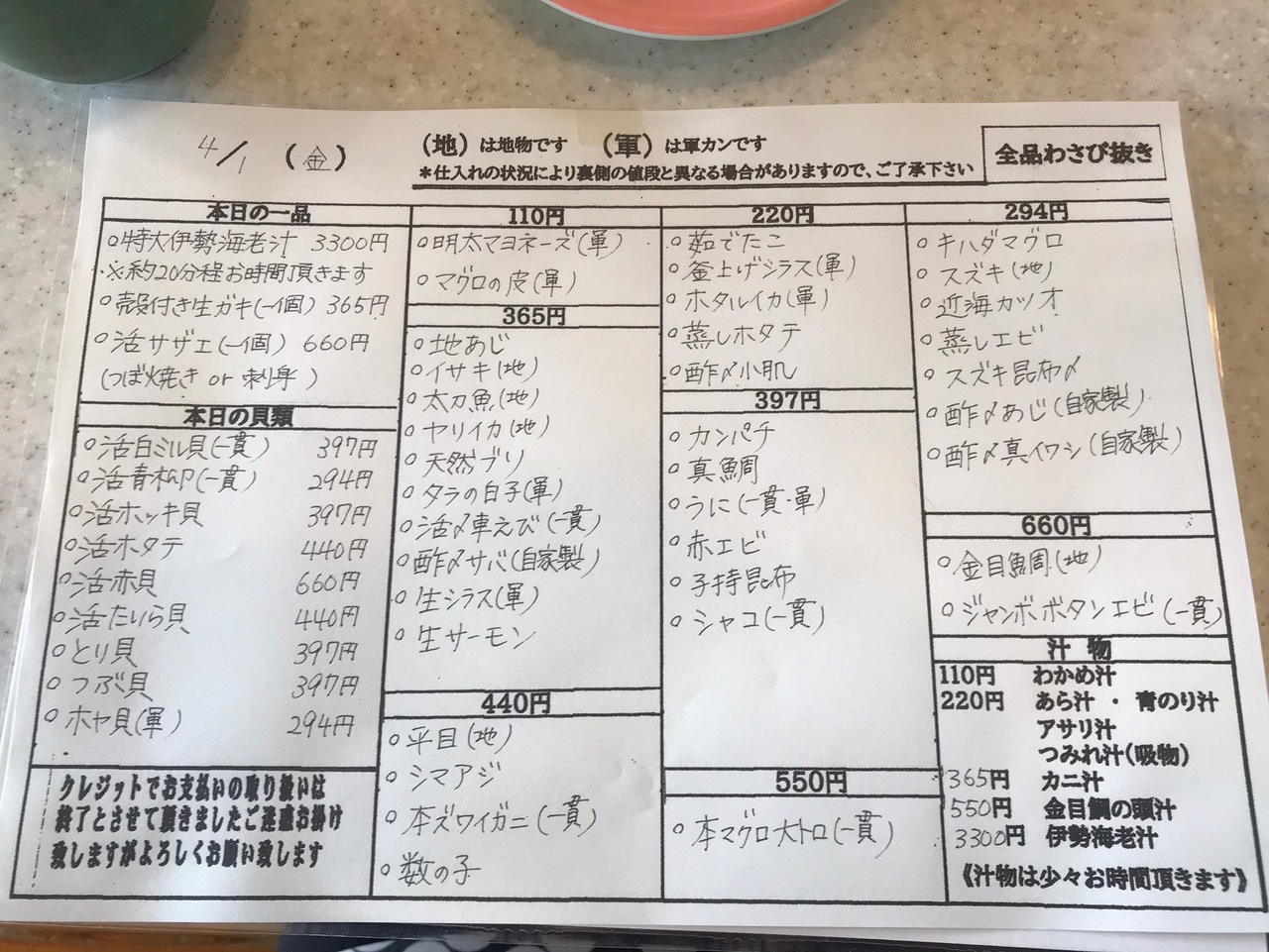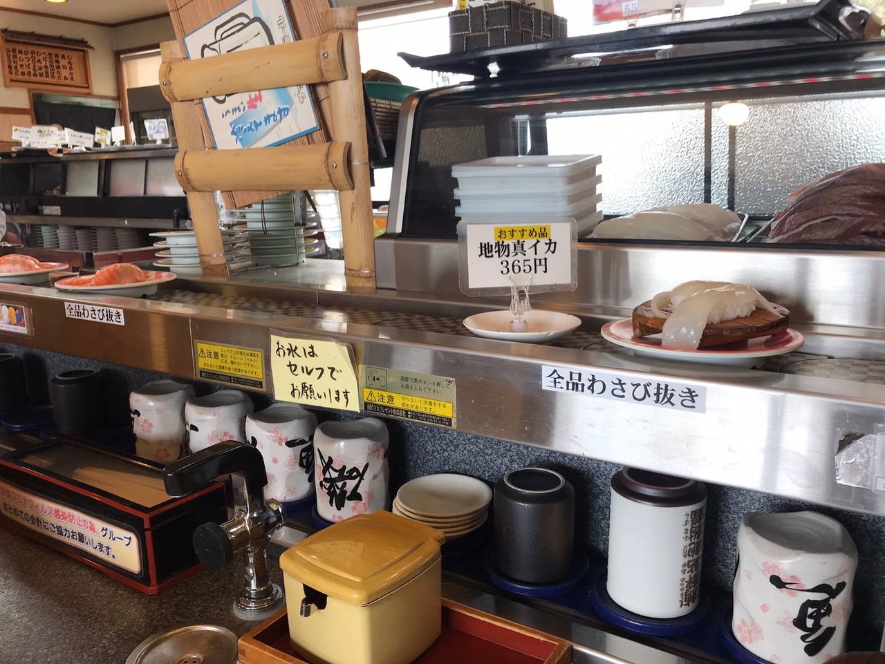 珍しい地魚のお寿司が並んでおりどれも新鮮で美味しかったです。店内からは海の見える席もあります。家族3人で一万弱くらいでした。- 旅行時期