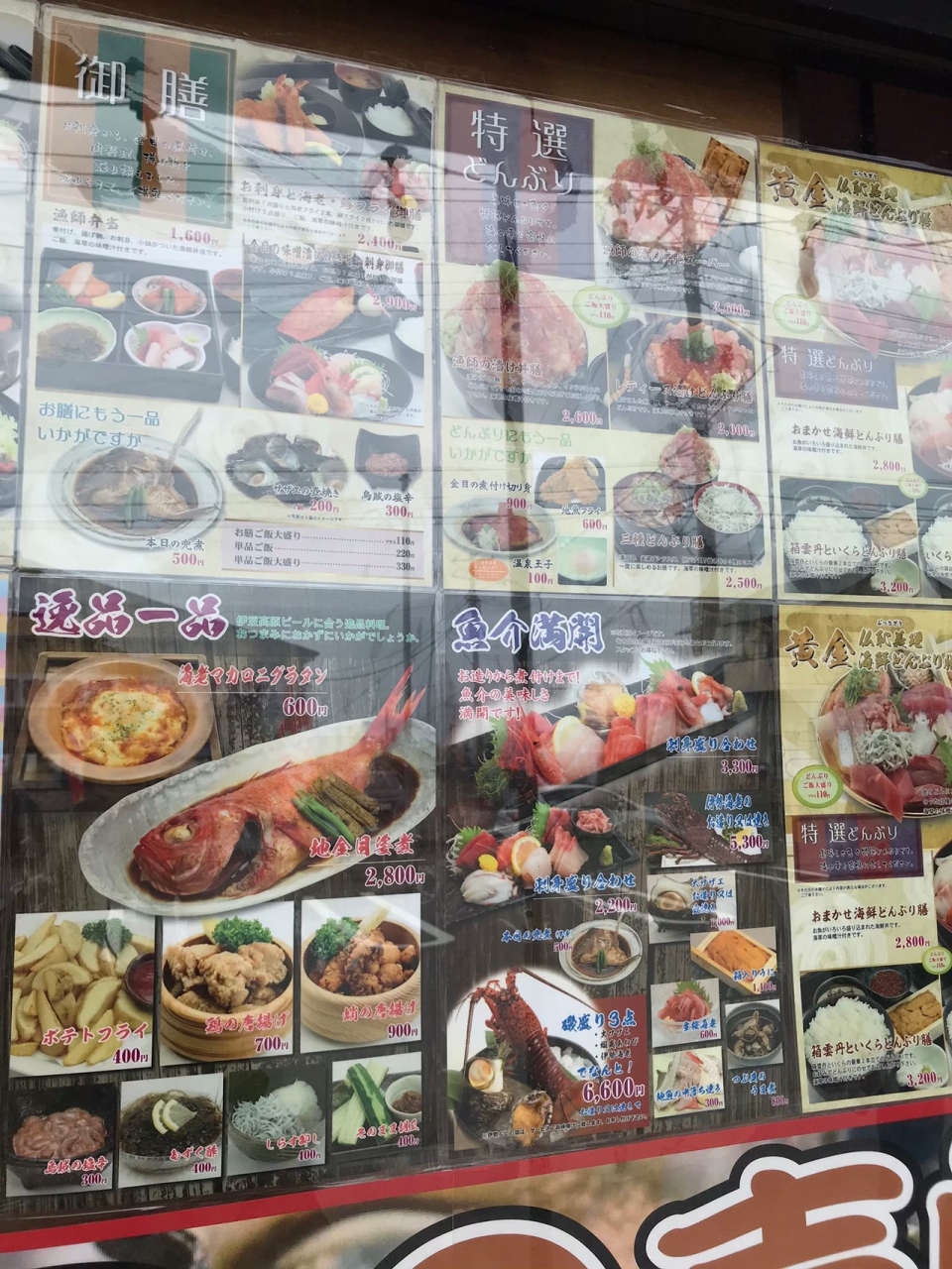 山盛りの海鮮丼、漁師の漬け丼などが有名でよくテレビや雑誌の取材があるようです。入り口には沢山の芸能人のサインが飾ってあり圧巻です。- 旅行時期