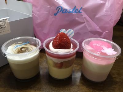 池袋東武のデパ地下にあるパステルです。プリンといえばパステル、と定番ですが、今回は季節ものの春らしい桜のプリンとイチゴケーキのプリン、そして黒糖のプリンを購入しました。