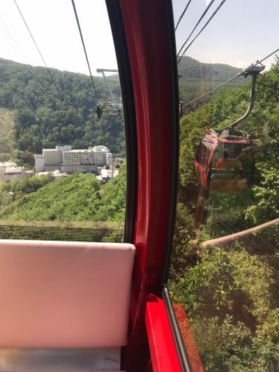 登別温泉の街から、山の上にあるのぼりべつクマ牧場へ行くためのロープウェイです。街を眺めながらの風景はとても楽しいです。
