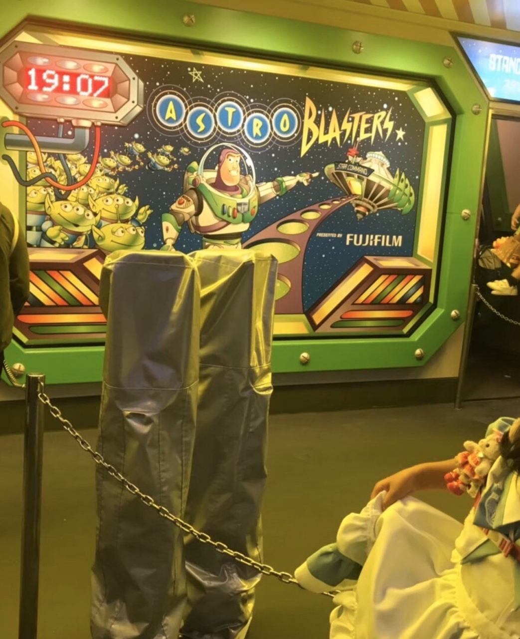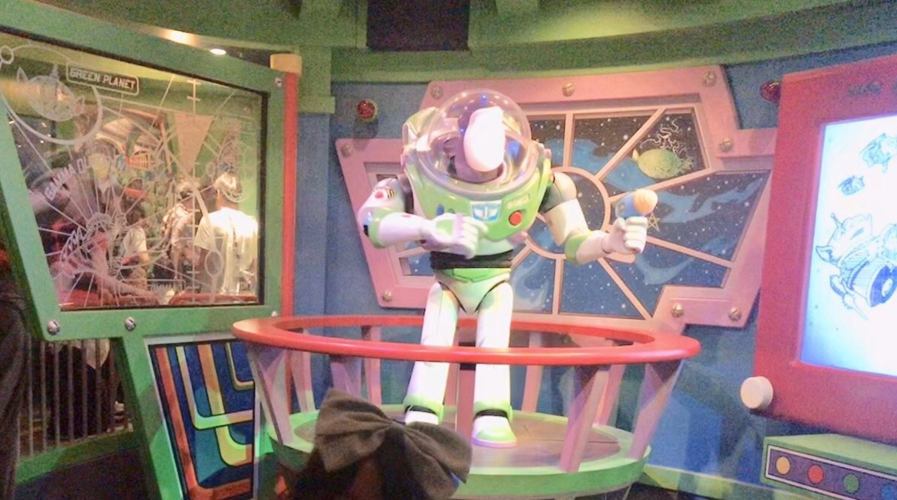 東京ディズニーランドのトゥモローランドにある、バズライトイヤーのアトラクションです。二人ずつライドに乗り込み、電子銃で敵を倒しながら進み、最後に点数を競います。