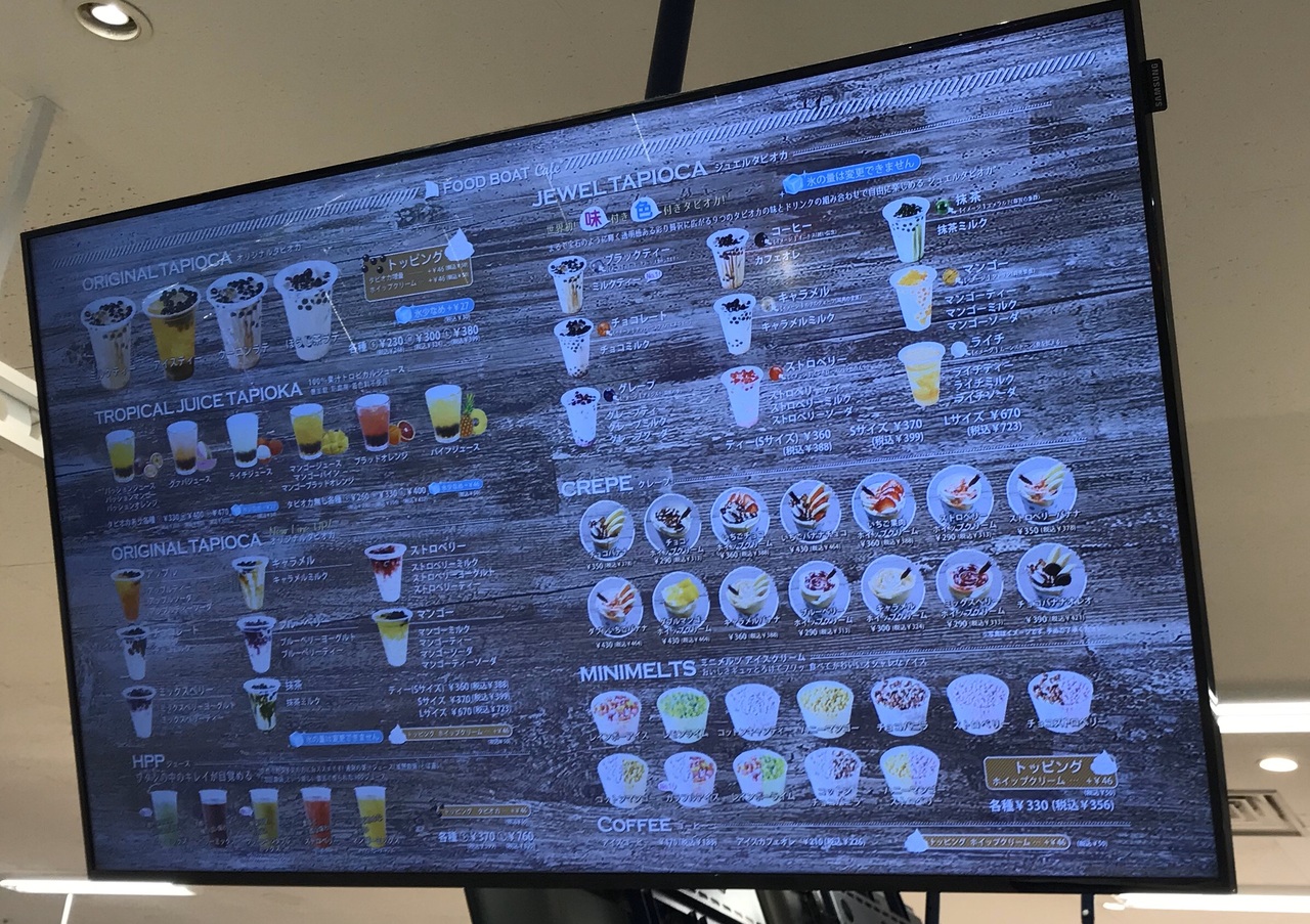 タピオカドリンクのメニューも豊富で、トッピングも色々選べてカスタマイズ出来るので楽しいです。フードボート専用のカフェスペースも有りますし、斜め向かいのフードコートの客席も利用出来るので、イオンでのお買い物に疲れたら休憩するのにぴったりです。