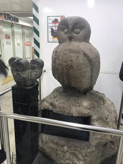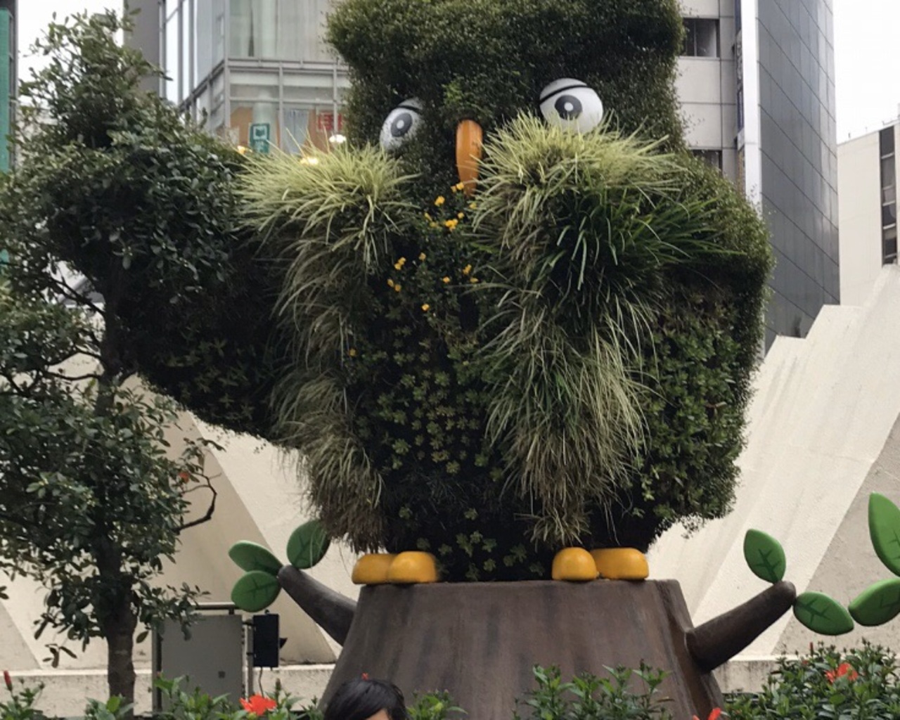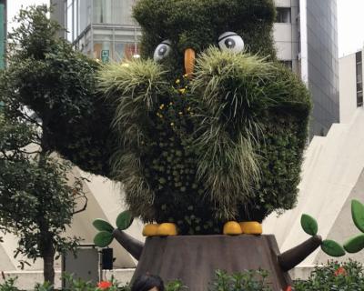 池袋駅の西口を出たところの広場にあるふくろうの像達です。池袋駅東口の小さな石のいけふくろう像と違い、こちらは大きさもかなり大きく、木や緑の葉っぱで出来ているので色鮮やかでとても目立ちます。いつも待ち合わせに利用している方達がたくさんいます。