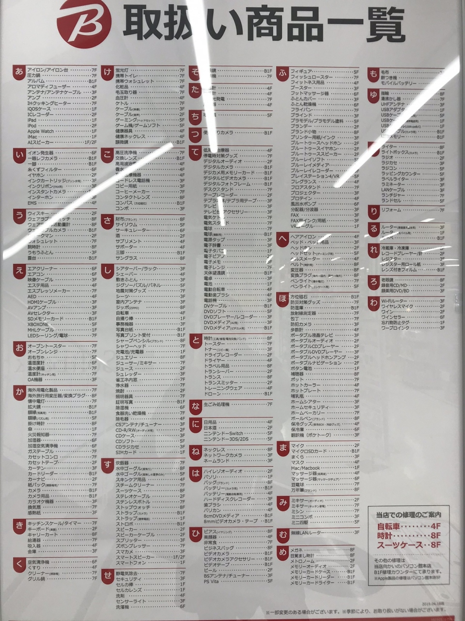 地下1階から地上8階までの大型店舗で、毎日の日常生活に必要な電化製品は一通り何でも揃いますし、お酒や食品の取り扱いもあります。