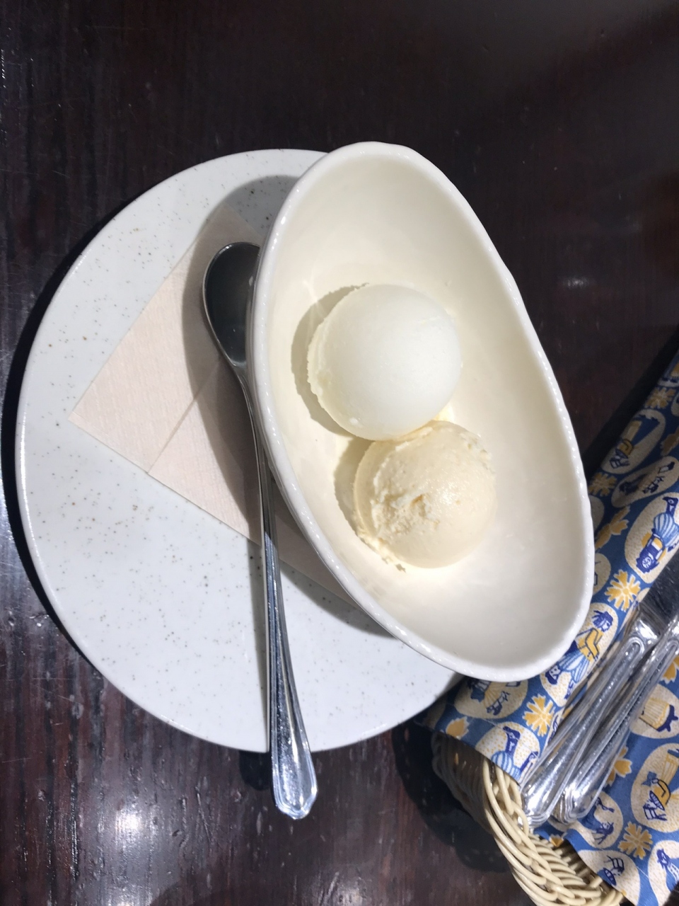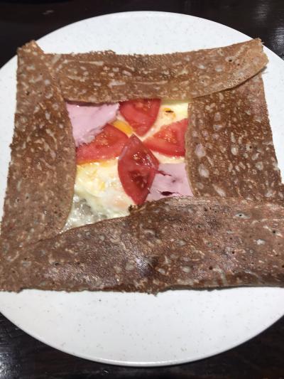 ランチセットをいただきました。トマトとチーズとハムのガレットは生地はもっちりして風味良く美味しかったです。デザートのハチミツ酒のアイスは大人の味で珍しく、サラダも美味しかったので、また利用したいです。- 旅行時期