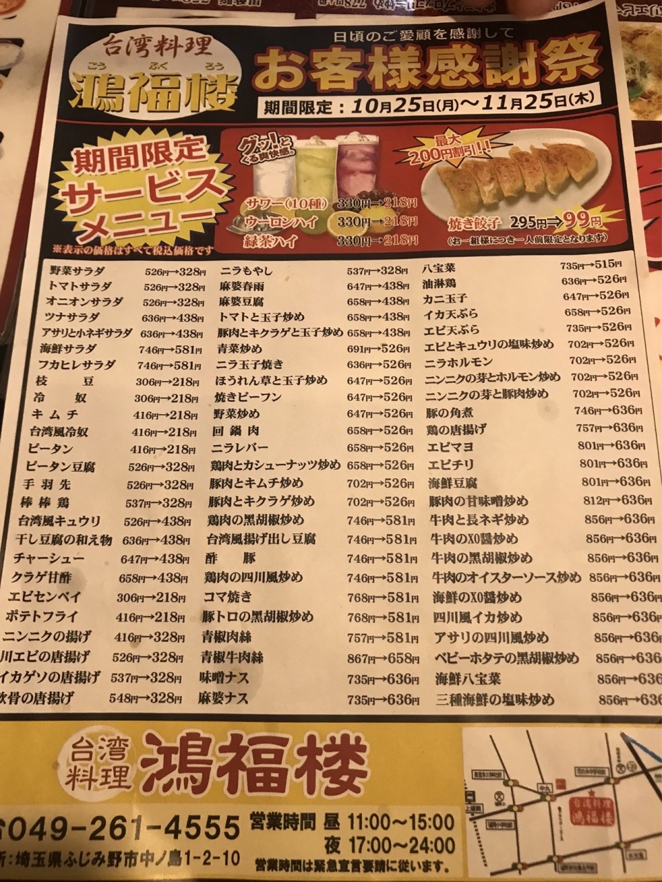 上福岡駅からは徒歩25分位かかるので、車で行く方がいい立地の台湾料理のお店です。