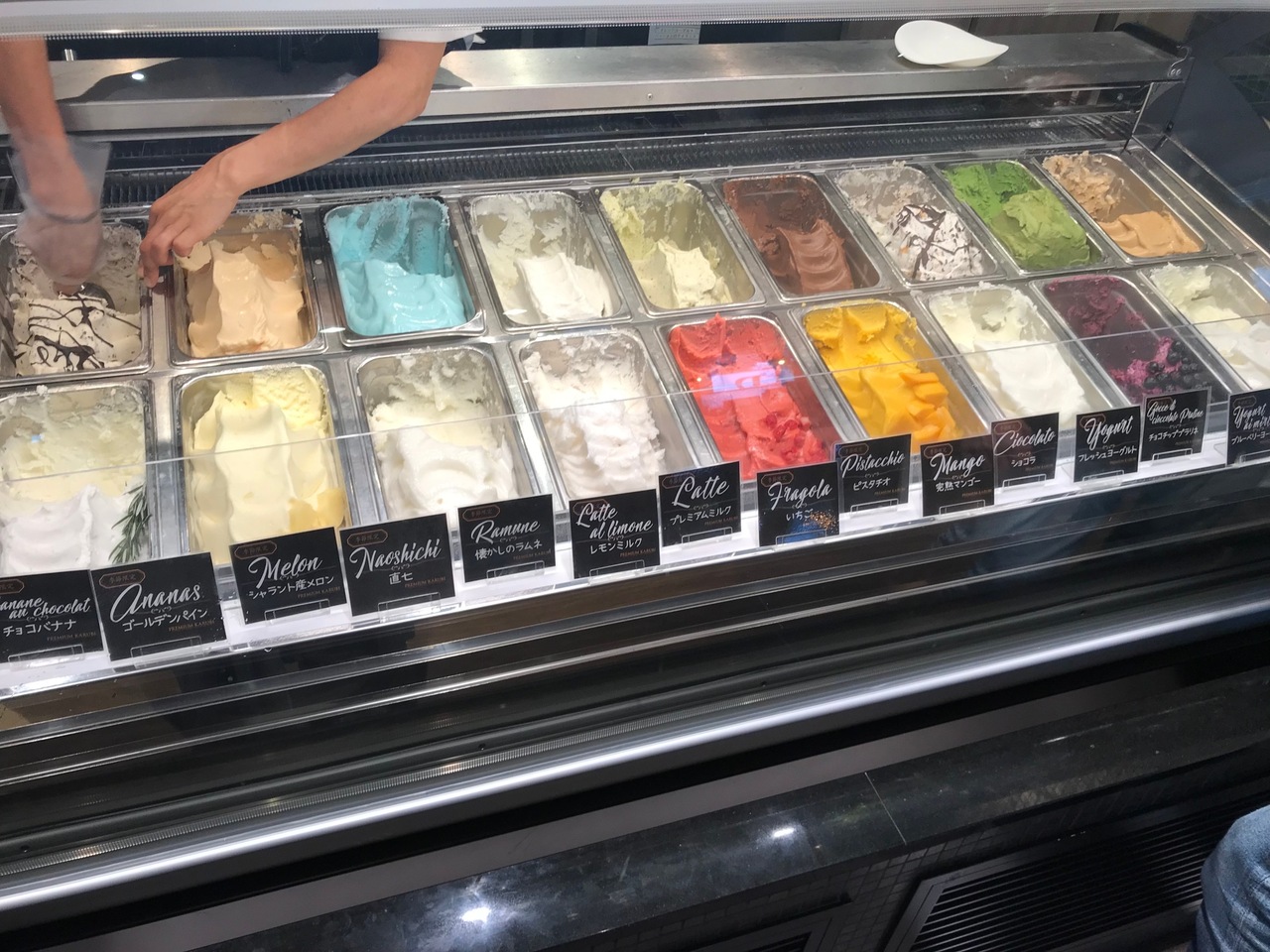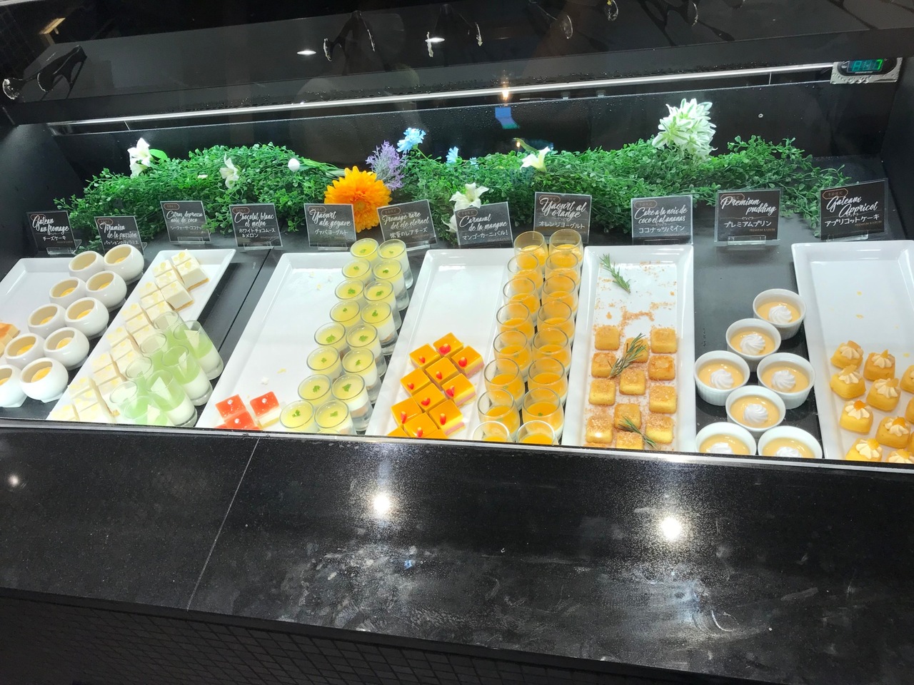 こちらは、パティシエの作るデザートが売りのようで、ジェラート類やケーキ類の種類が豊富でとても美味しいです。1~2ヶ月毎にデザートは季節のものに入れ替わるのが嬉しいです。夏らしいメロンやシークワーサー、マンゴーなどのデザートがありました。- 旅行時期