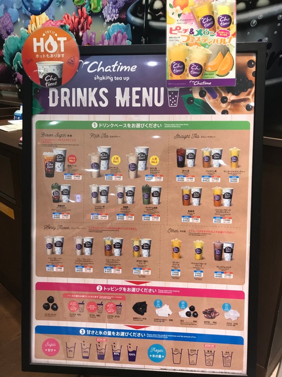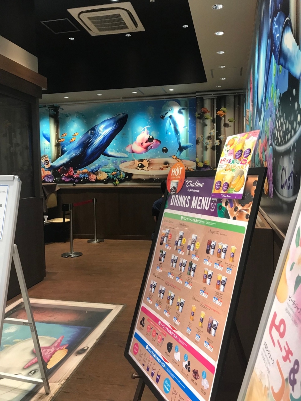 ららぽーと富士見の一階にある、スペシャルティー専門店です。人気があり、いつも人が並んでいます。様々なフレーバーのお茶やジュースもあります。それぞれ氷の量と甘さを選べてトッピングもカスタマイズ出来るので、とても楽しいです。イートインの店内は壁画がトロピカルでカラフルです。