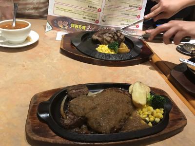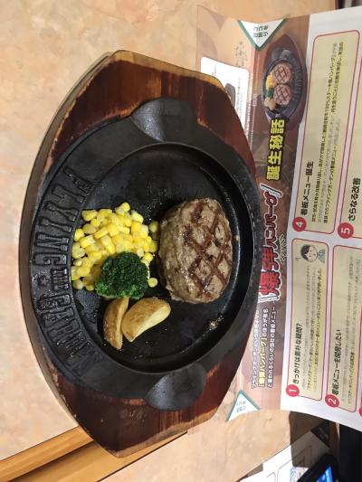 爆弾ハンバーグのレストランで、ログハウス風の可愛らしい一軒家です。爆弾ハンバーグは鉄板で運ばれてきて、テーブルで2つに切り分けてくれます。ジューシーで美味しかったです。- 旅行時期