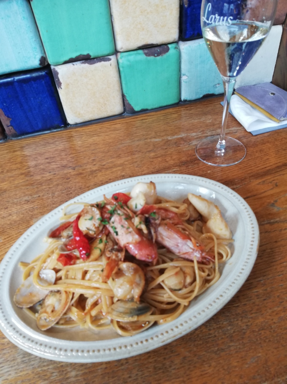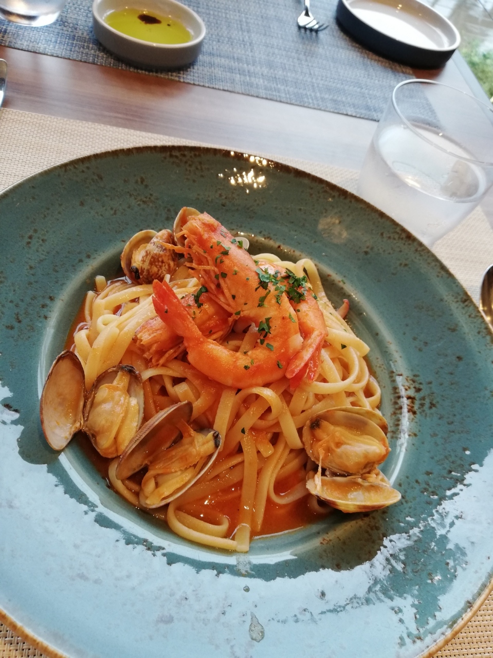 前菜とスプマンテのセットと、ペスカトーレをいただきました。