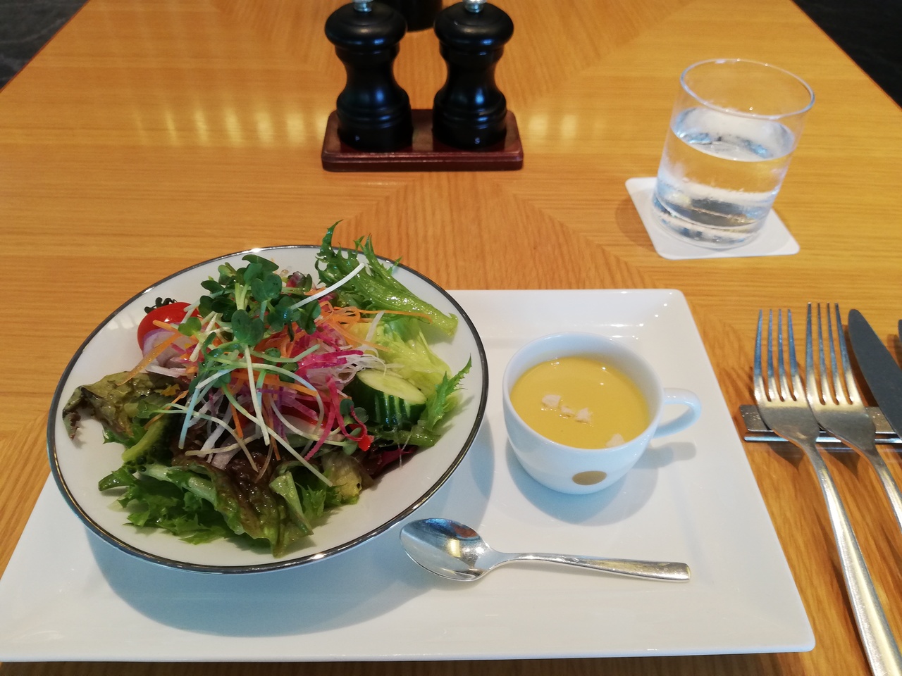 はじめに出てくるミニサラダとミニスープのサラダはけっこうボリュームがありました。