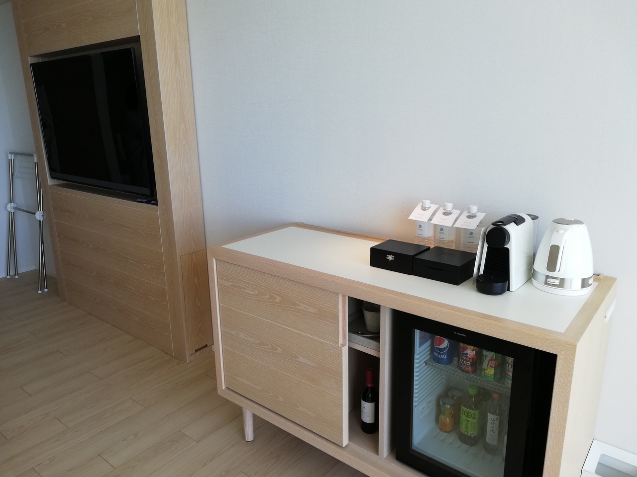 フロント近くにはコーヒーと紅茶があり、部屋に持ち込めます。