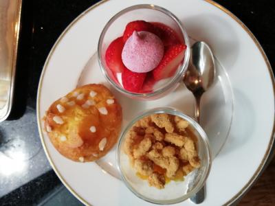 まずはチエックインと同時にアフタヌーンティー。自分で取る、ビュッフェスタイルではなく3段のトレーがくるので、特別感がありました。
