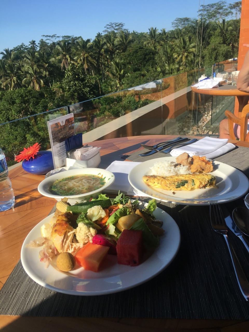 朝食はインドネシア料理など魅力的な料理やスイーツがたくさんで、サービスもよく行き届き、景色も最高です。