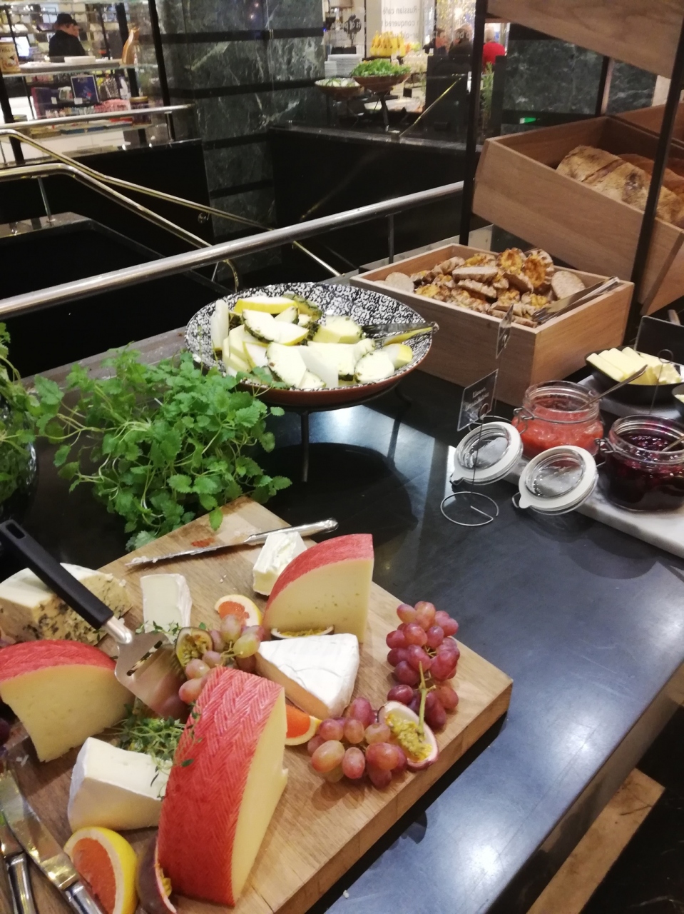 野菜、フルーツ、サーモン、パン、ケーキ、盛りだくさんです。