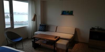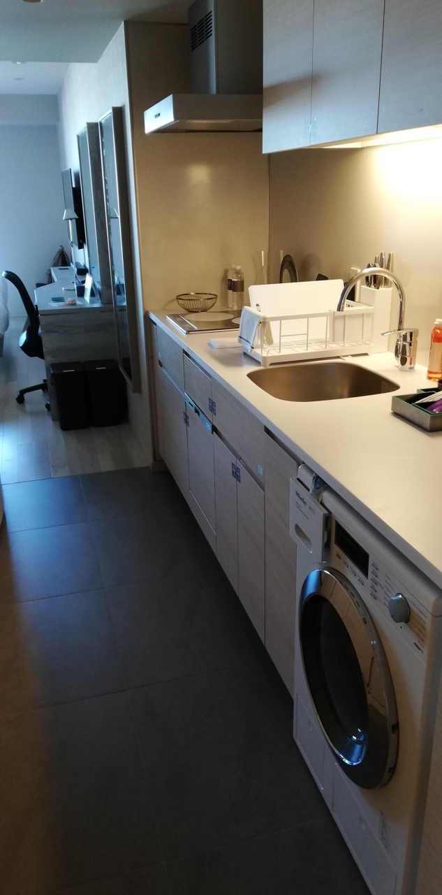 神奈川県民割が12月から始まったので、クーポン争奪戦に参加して、気になっていたホテルに宿泊しました。こちらは北仲ノットという施設にあり、無理の展望台があるということでよくテレビにも出ています。泊まると朝昼晩の景色が楽しめるかなと思い予約しました。お部屋は意外と狭くて高級感はないです。キッチン、調理道具、洗濯機など完備していて、長期滞在向けのホテルです。