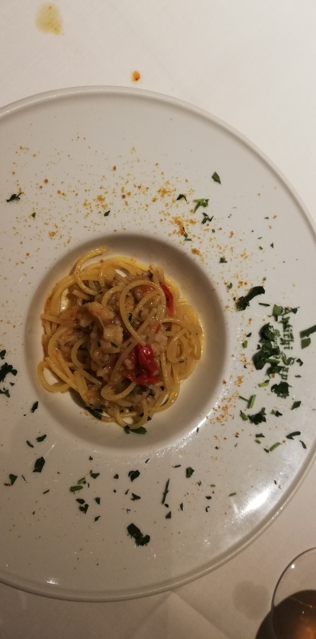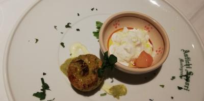 プーリア料理の前菜がいろいろいただけるのが推しメニューのようですが、この前菜はいまいちなお味でした。パスタとメインのお肉料理は美味しかったです。- 旅行時期