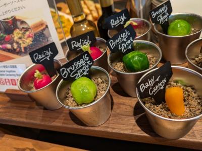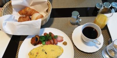 マリオットのポイント泊、プラチナ特典は、ランチビュッフェかディナービュッフェ、またはポイントでしたので、ディナービュッフェにしました。朝食は無料にはなりませんが、特典を使うと1000円でいただけるようです。特典はタイミングによって変わるかもしれないので、事前にお確かめください。