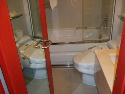 でもバスルームが予想以上に狭く、トイレとお風呂の間が少ししかないので、トイレに座るには横から座らないと無理な状態でした^^;