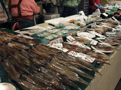 新鮮なイカやアワビが所狭しと並んでいますよ。