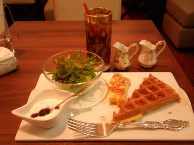 写真は今日のモーニングサービス。(ワッフルセット)