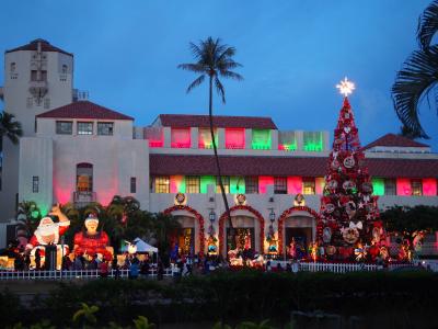 サンタご夫婦やツリーを見に行きました。