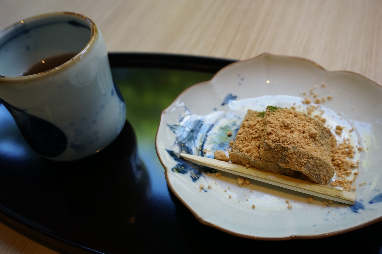 甘味・・・わらび餅でした、一緒についてきた黒豆茶との相性が抜群!