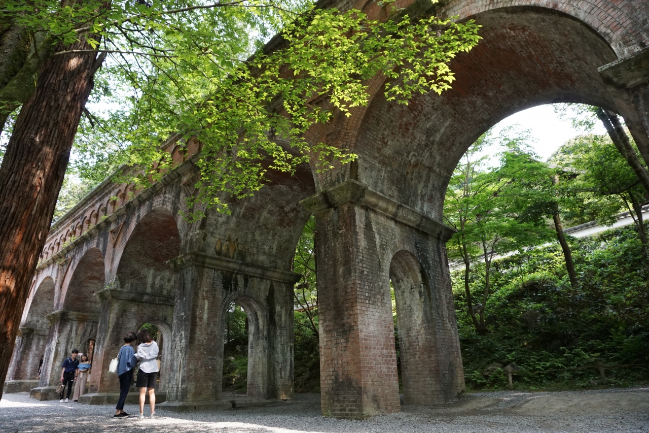 京都の和風の空間に突然現れるこのアーチは琵琶湖の水を京都に引くために作られたのだそう。
