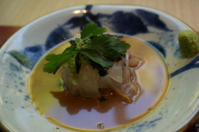 真鯛の薄造り・・・ゴマと味噌のタレが美味しい、上品なのにしっかりとした味付け