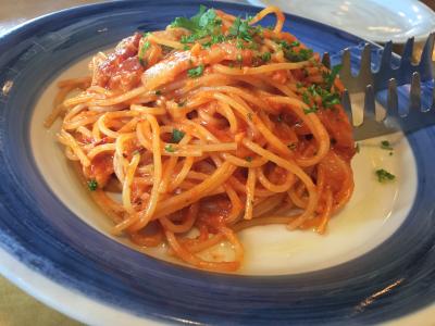 2人でトマトソースのぺペロンチーノとピッカンテとマルゲリータのハーフ&ハーフピザをシェアし、グラスワイン1杯をプラスして2500円弱でした。ちょっと贅沢なランチでございました!- 旅行時期