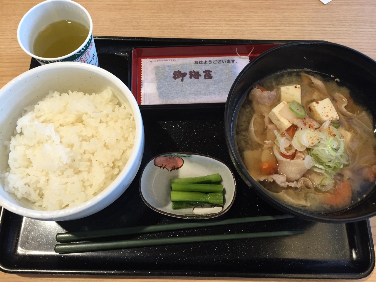 レストランで朝豚汁定食500円頂きました。美味しいですよ〜。