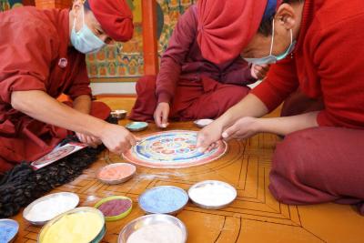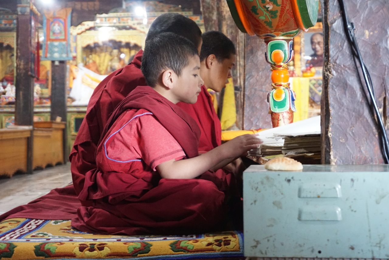 修行はバター茶とパンの朝食をとりながら大した緊張感もなく行われていて少々笑えました。