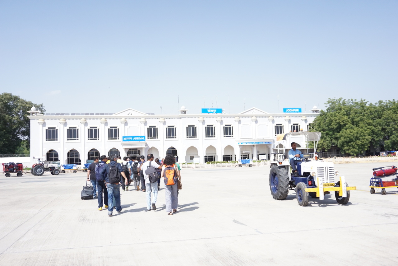 思ったより小さな田舎臭い空港でした。ラジャスターンの衣装などが飾ってありました。