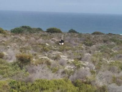 野生のダチョウでしょうか? お散歩中です。遠くに海が見えて来ました。