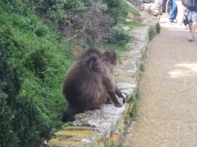 ケーブルカーの乗り場近くにはヒヒがいます。私は近づかないように用心して...
